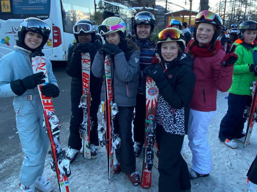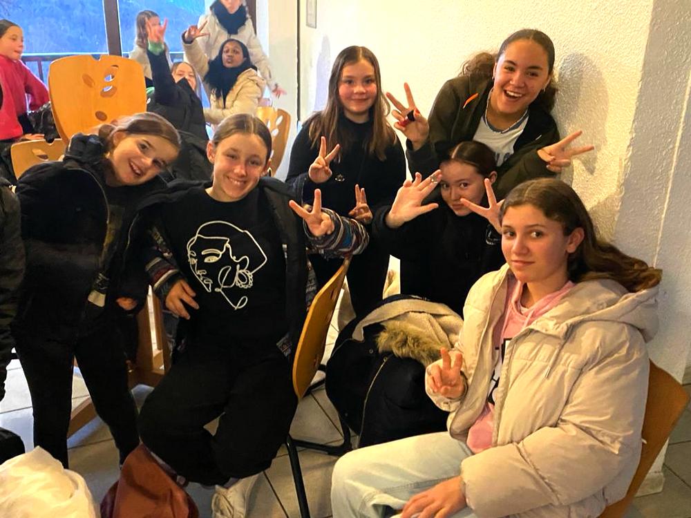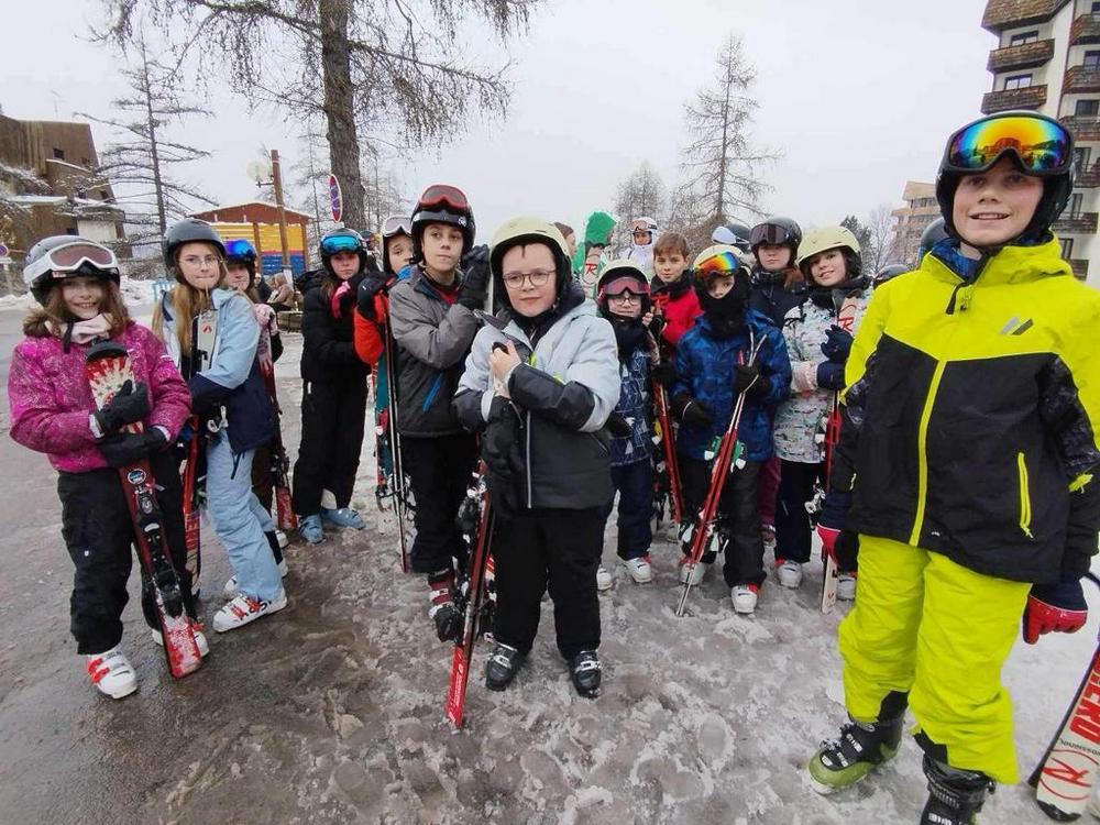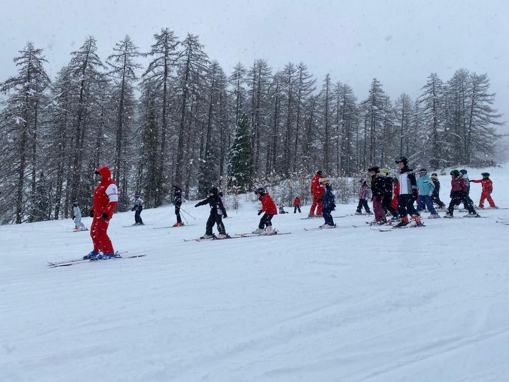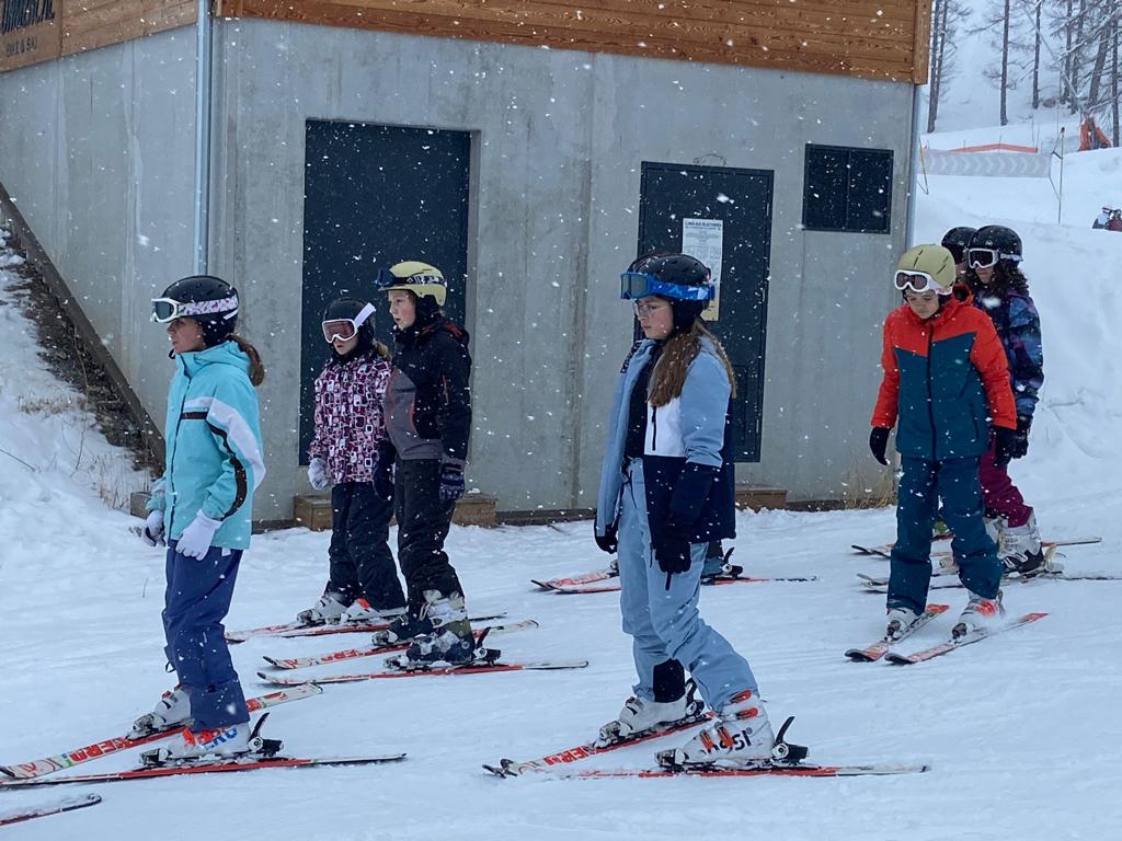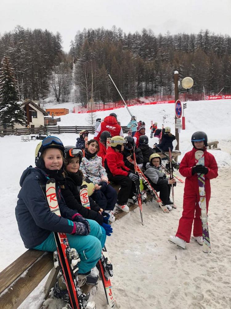 Après un bon déjeuner, les élèves se sont rassemblés par groupes de niveaux. Leurs moniteurs les ont conduits au pied des pistes en navette (5 minutes en bus du centre) pour leur premier cours.