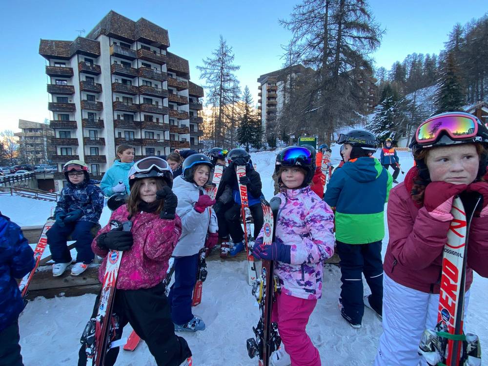 Après une nuit de sommeil profond, les élèves reprennent leurs skis, casques et lunettes pour améliorer leurs performances sur les pistes.
