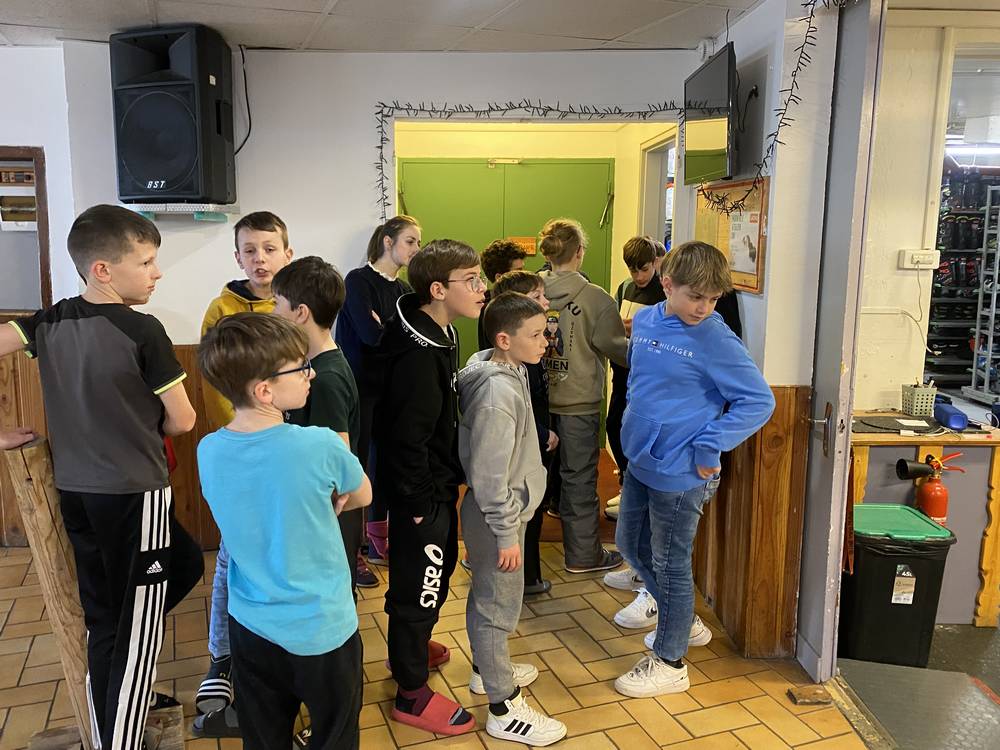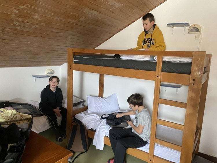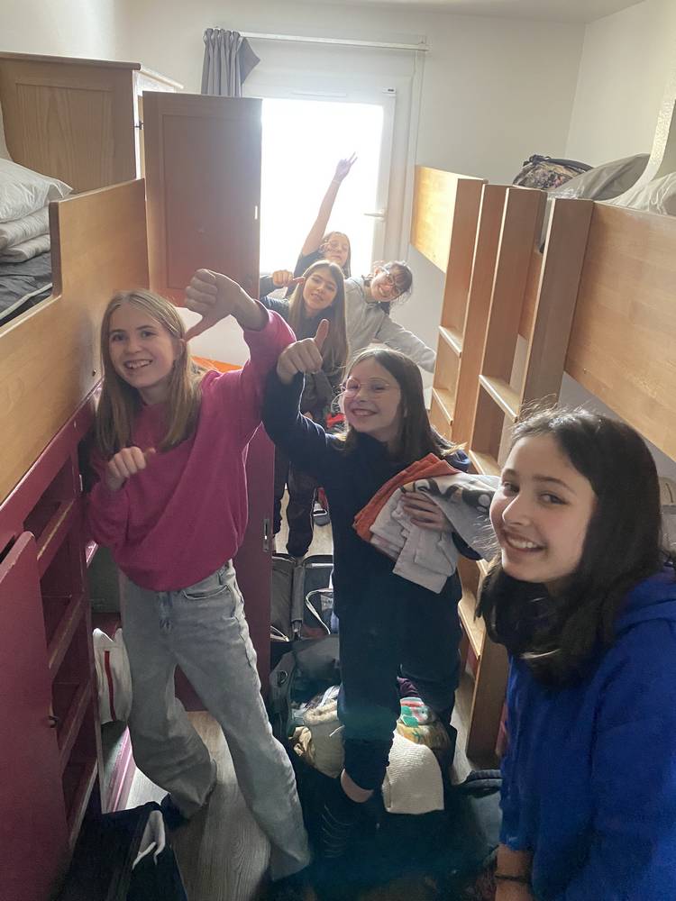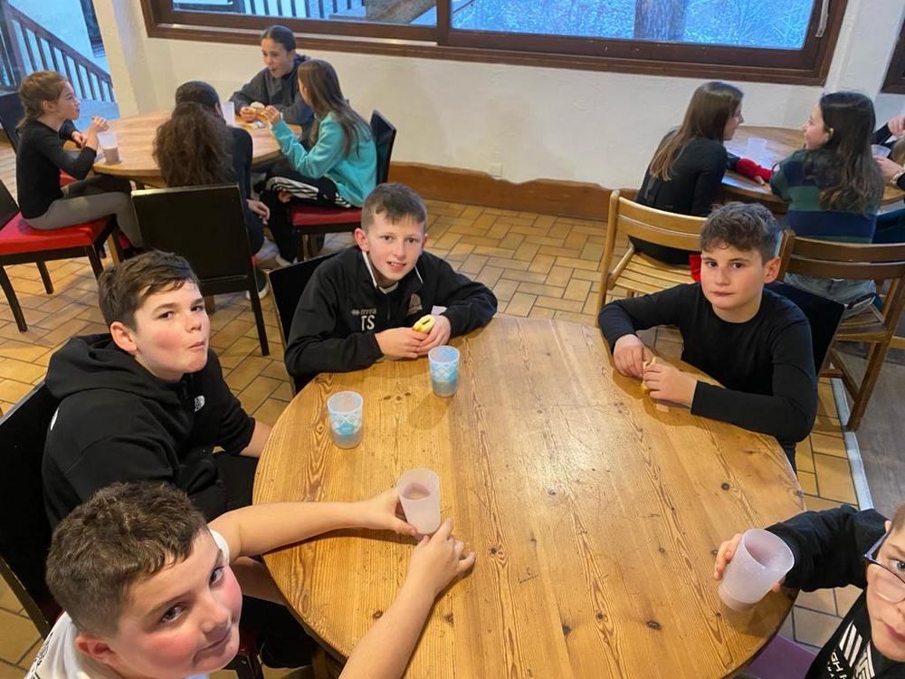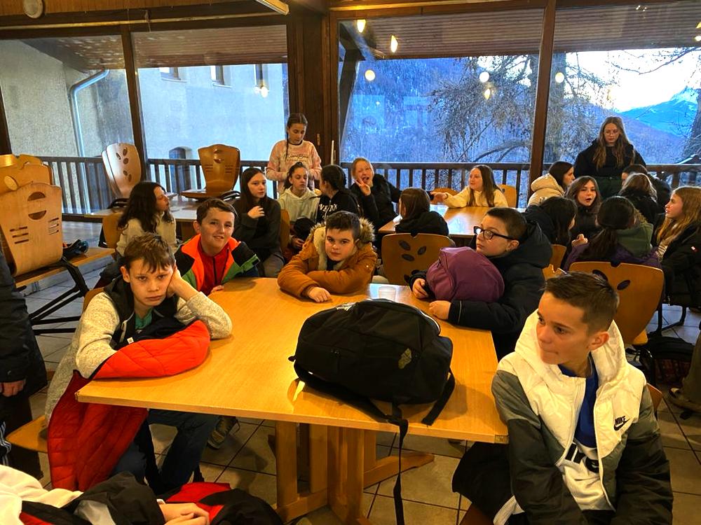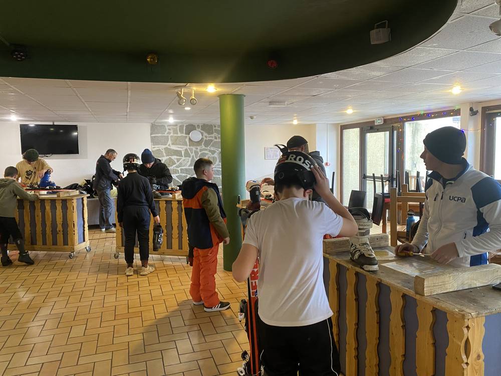 Les élèves ont rapidement pris leur petit déjeuner et ils viennent de prendre possession de leur chambre avant d’aller essayer le matériel de ski.