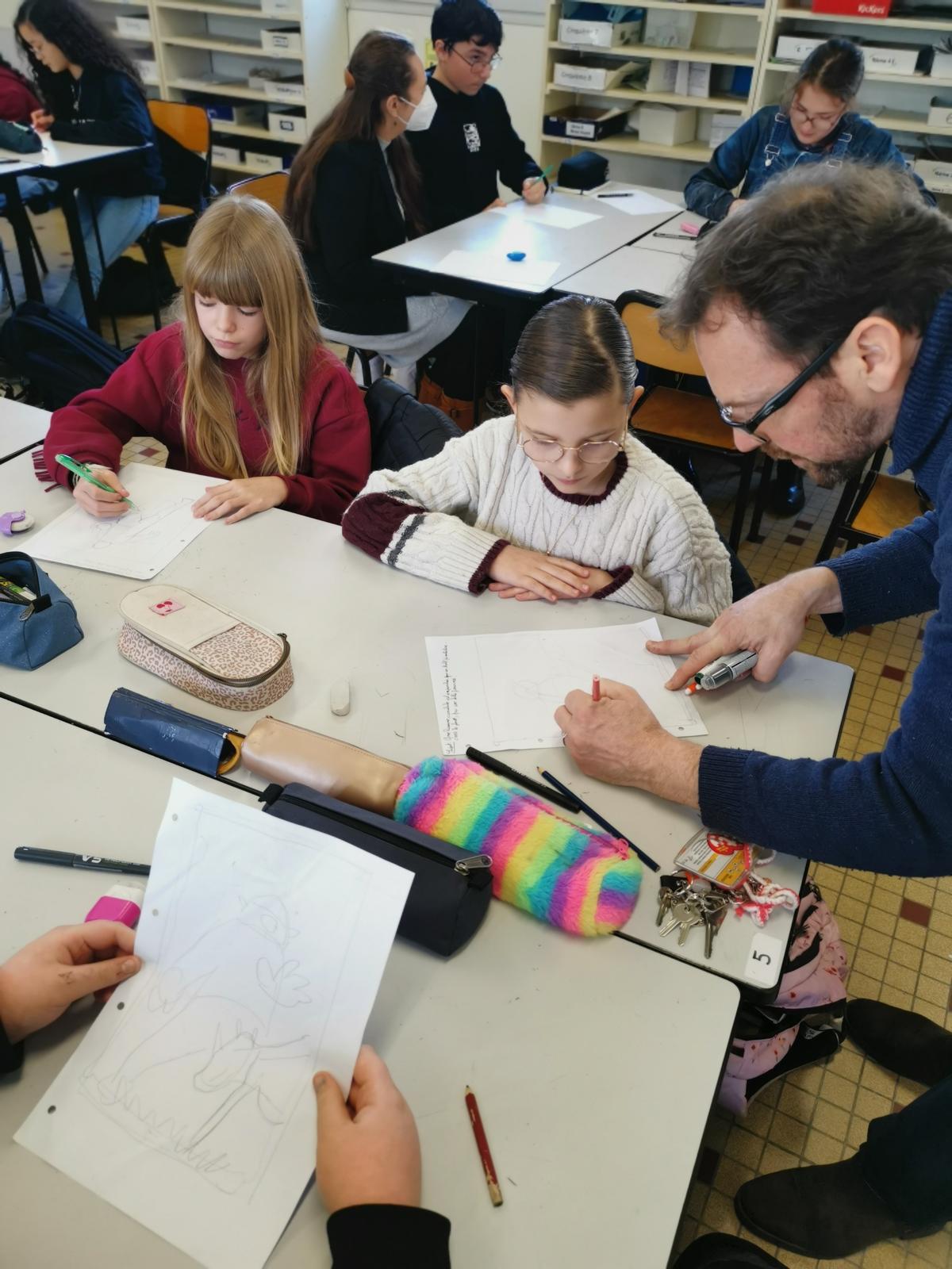 Les sixièmes qui ne sont pas partis au séjour à la montagne ont eu la chance de rencontrer Laurent Lefeuvre, auteur dessinateur.