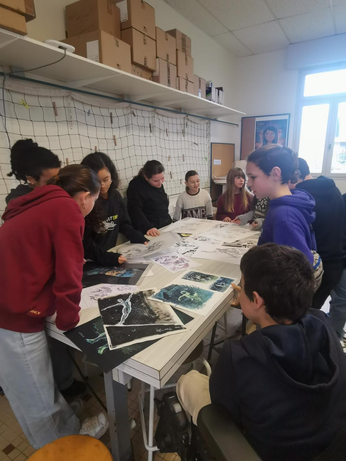 Les échanges se sont portés sur les différentes lectures de chacun ; ce qui a amené à différencier comics, bandes dessinées et mangas. Laurent a expliqué qu’il a appris à dessiner d’abord en copiant et en se montrant ouvert à tout. Il a d’ailleurs bien montré comment l’ensemble des matières au collège permet d’être dessinateur.