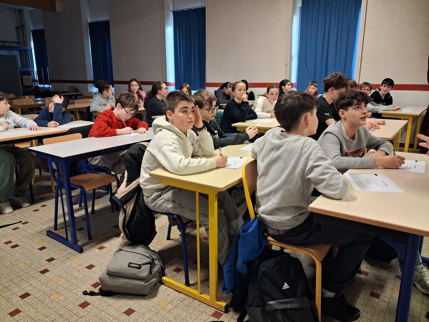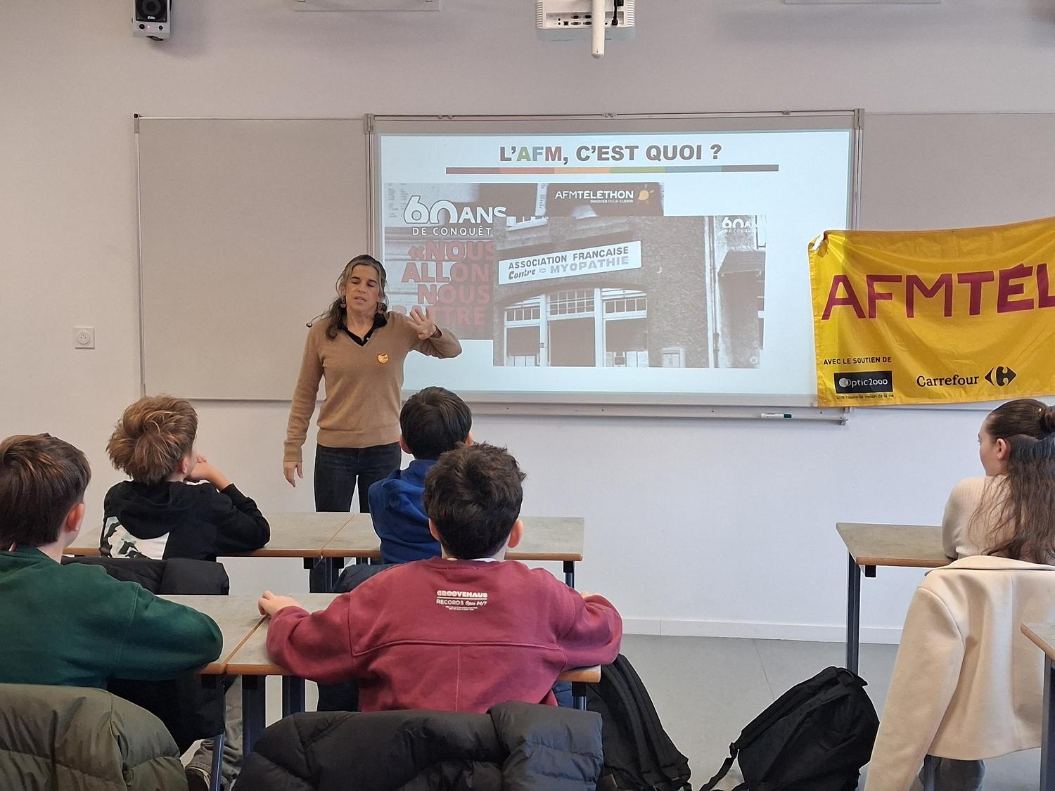 Dans le cadre de leur projet solidaire de l’année, les élèves de 5e se sont engagés à soutenir le Téléthon. À cette occasion, deux bénévoles de l’association sont intervenues afin de sensibiliser les élèves aux actions menées et aux valeurs portées par le Téléthon.