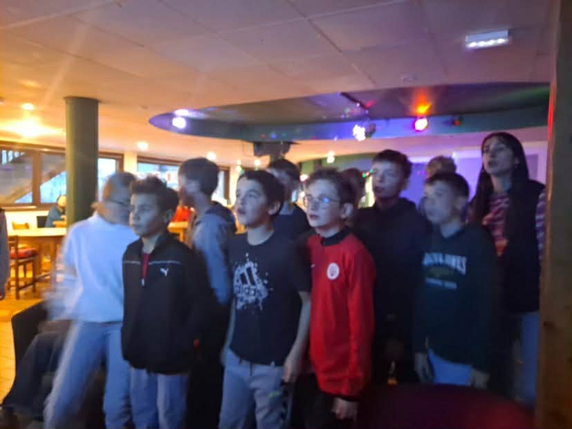 Ici, pas de chute de neige contrairement à la Bretagne, mais il y a ce qu'il faut pour skier. Après le goûter, une partie du groupe s'est essayé au karaoké. Une bonne douche, un dîner chaud, et une nuit réparatrice dans un vrai lit permettront aux jeunes de repartir sur les skis en pleine forme dès demain matin.