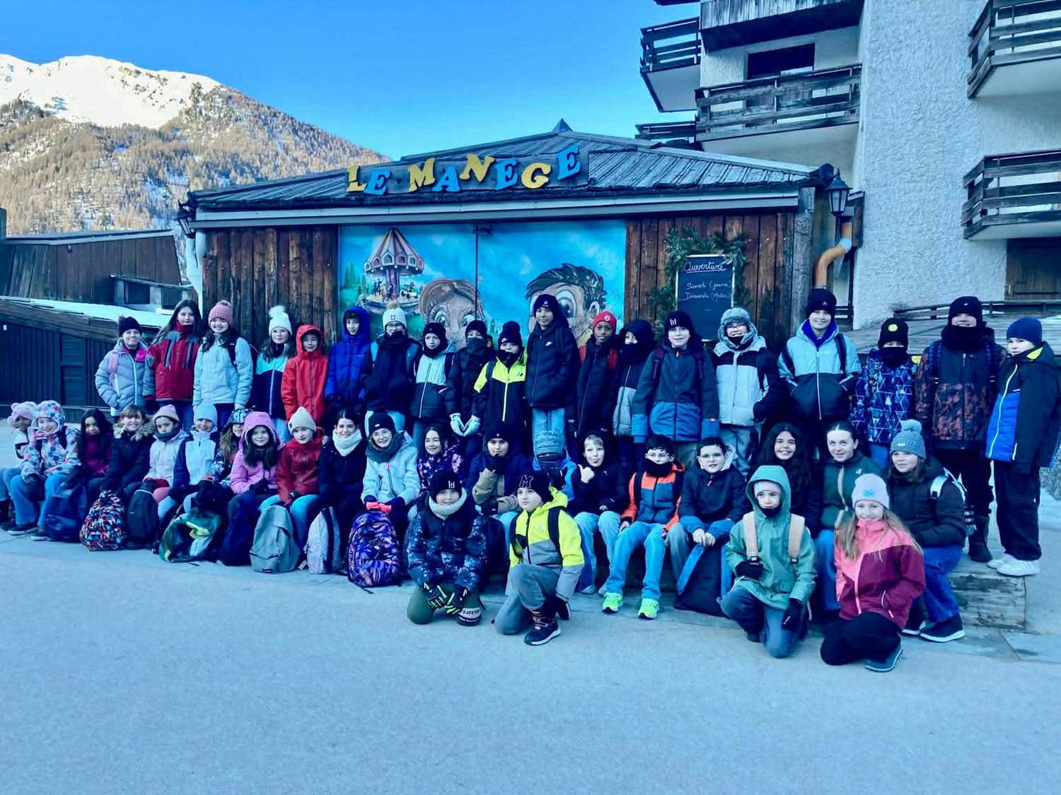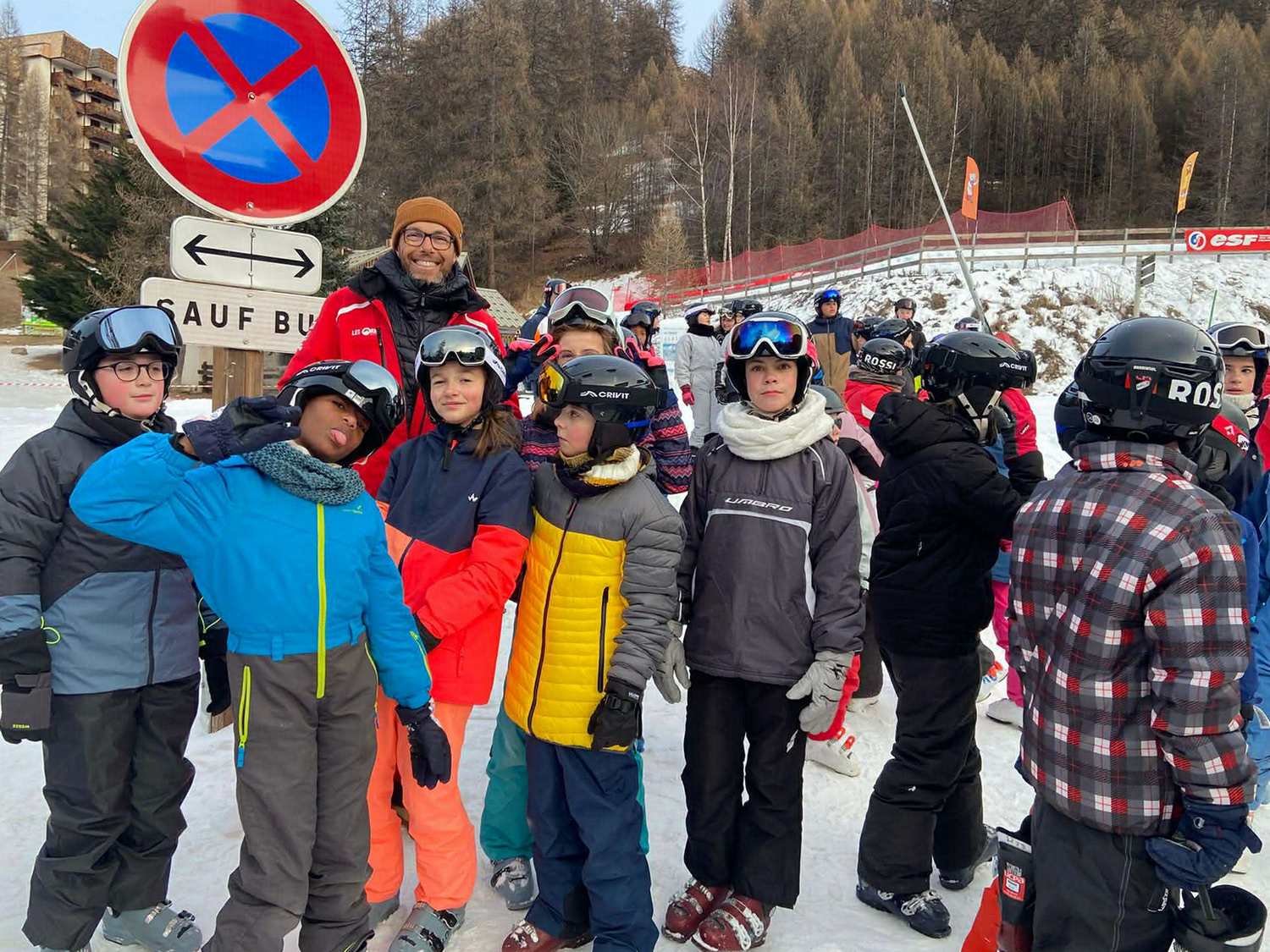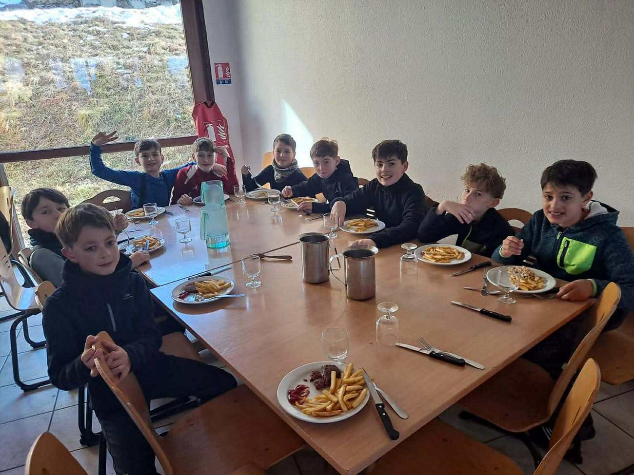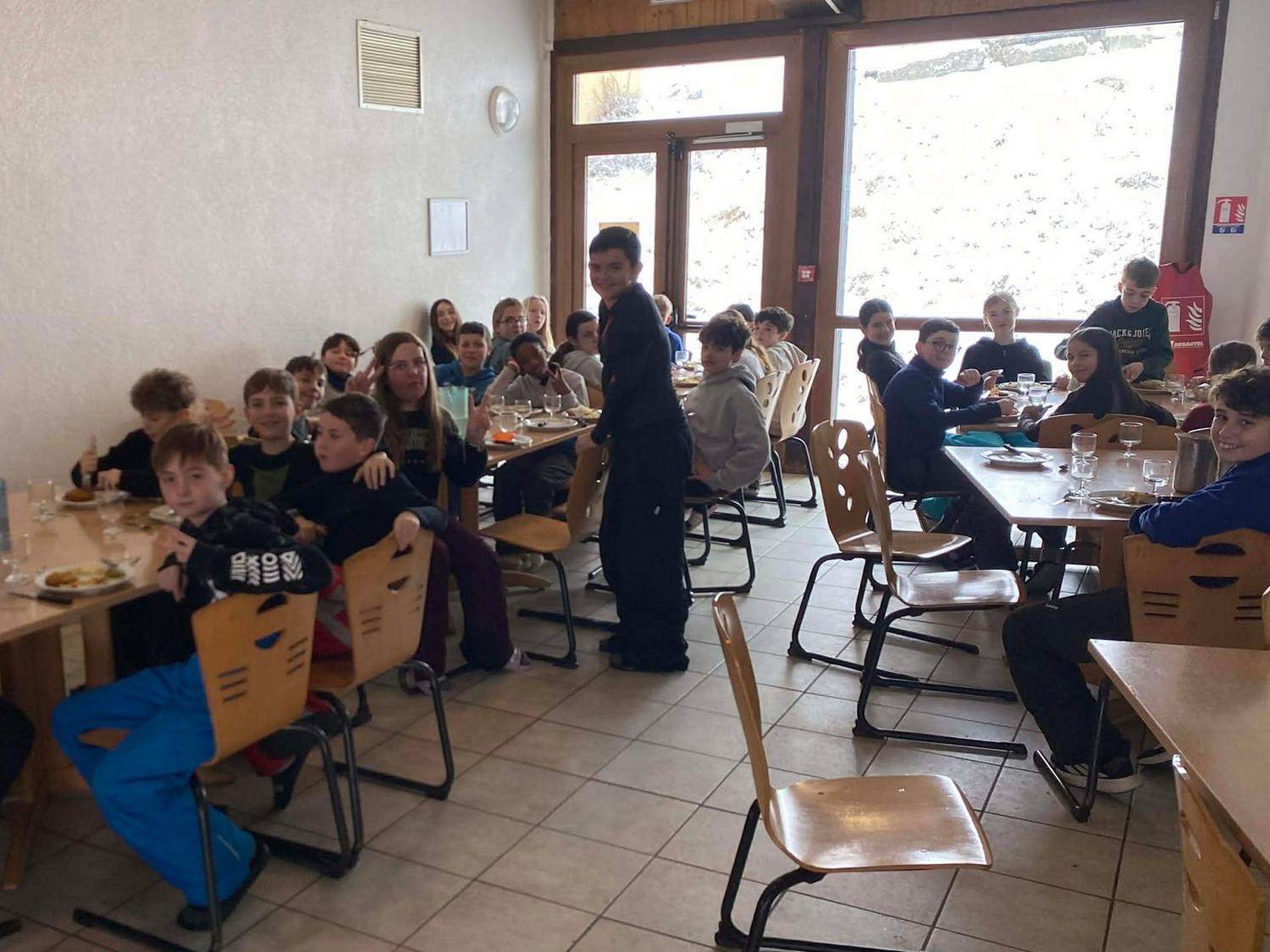 Une nuit calme et reposante, du soleil dès le matin, des cours de ski où les enfants progressent... et des frites à midi ! Des sourires, des joues roses et ce soir : topo neige. Des explications éducatives sur les montagnes et leurs dangers. Même s’il ne neige pas autant qu’en Bretagne les canons à neige offrent des pistes blanches et toutes lisses.