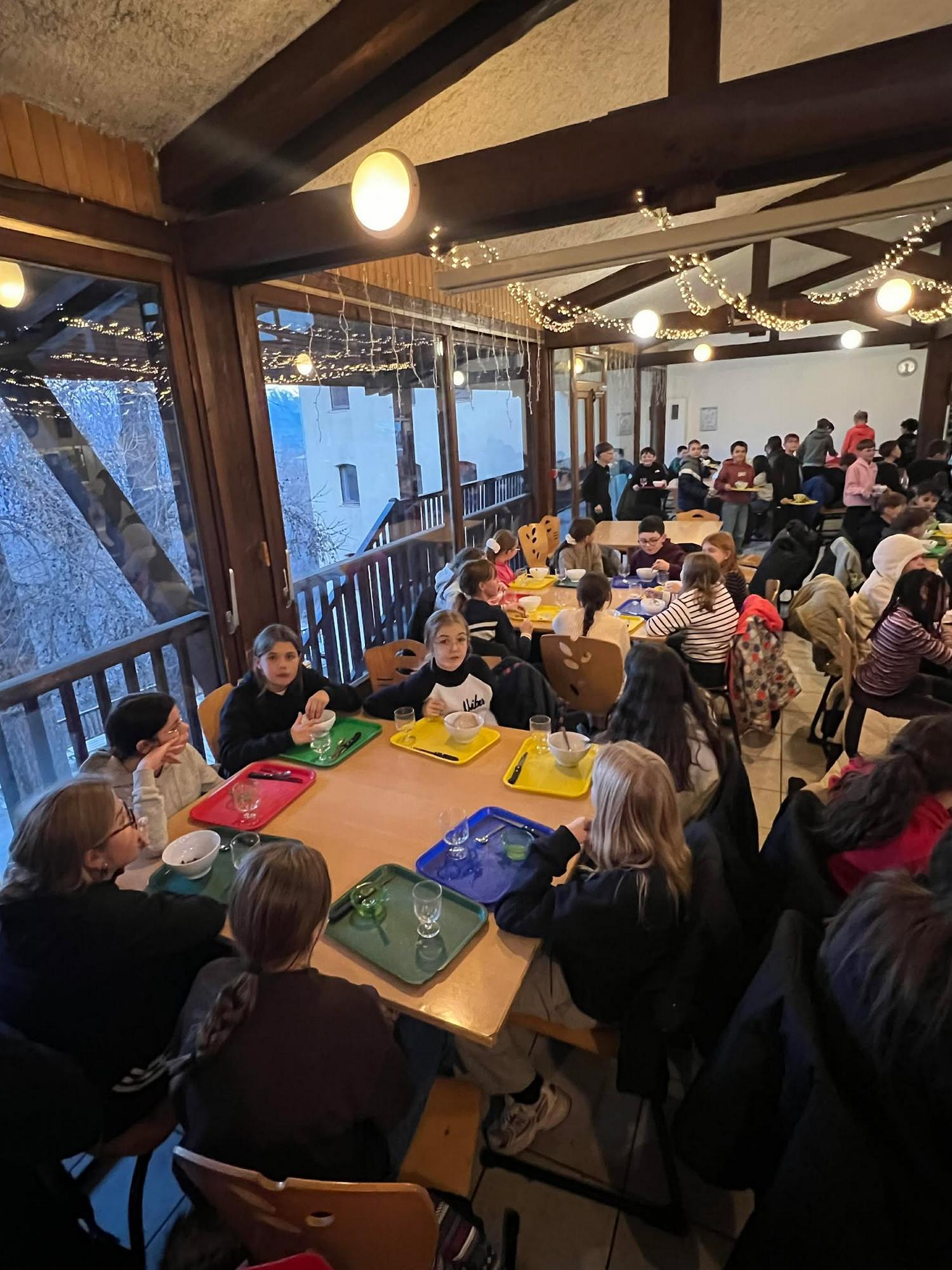 Notre voyage s'est déroulé sans embûches, et nous sommes arrivés au centre UCPA de bonne heure ce matin. Après un solide petit-déjeuner, les jeunes ont pu découvrir leurs chambres, ranger leurs affaires et faire leur lit... Ensuite, chacun est passé s'équiper en chaussures, skis, casques et les cours de ski ont commencé dès cet après-midi.